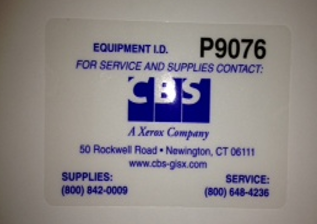 To order a new toner or paper for your printer please contact your building/department contact for entering WinCap orders. If you are using a printer that has CBS label affixed to it that looks like picture below let them know and give them your equipment ID.